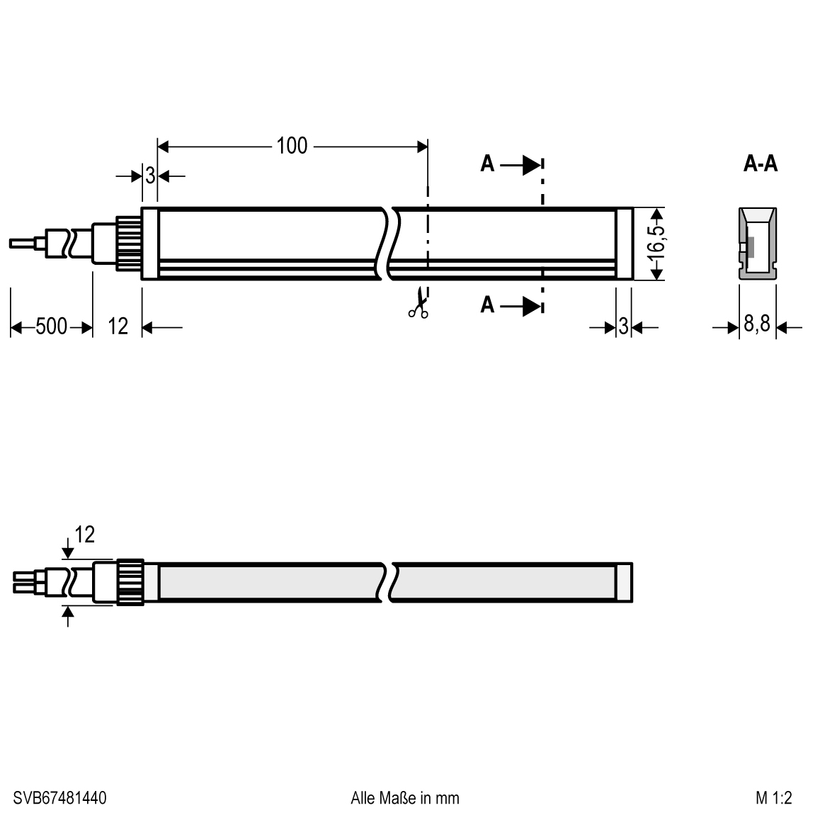 Der Neon-Flex LED-Strip kann in jeder Wunschlänge (Angabe der benötigten Segmente), unter Beachtung des Teilungsmaßes von 100mm konfektioniert werden. Die maximale Einspeiselänge beträgt 10m bei einseitiger Einspeisung, bzw. 20m bei beidseitiger Einspeisung. Der konfektionierte Strip wird standardmäßig einseitig mit einer 0,5m langen Anschlussleitung (2x 0,75mm²) mit freien Aderenden ausgeliefert. Da es sich hier um einen Side-View Neon-Flex-Strip handelt, ist der LED-Strip seitlich angebracht, wodurch sich der Neon-Flex-Strip nach links und rechts beliebig biegen lässt (Biegeradius beachten). Außerdem ist der Strip UV-, Chlor, Salzwasser-, und Lösemittel- beständig (nicht Meerwasserbeständig). Der Einsatz eines Aluminiumprofils ist optional möglich, jedoch nicht unbedingt erforderlich. Die Lichtausbeute beträgt 1000lm pro Meter. Mittlere Nennlebensdauer: L80B10 bei 50000h.
