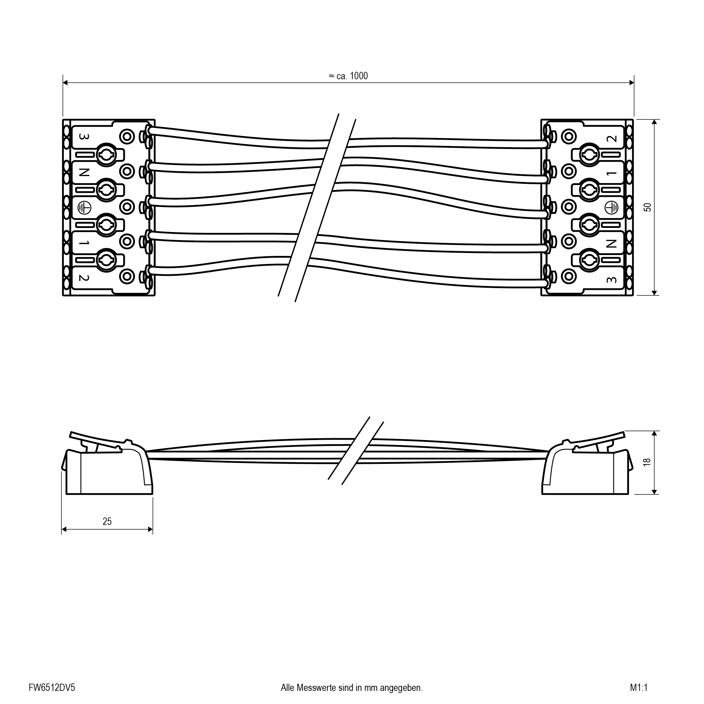 Durchgangsverdrahtungsset für die Leuchte FW65122440. 5x2,5mm² Kabel mit 2x 5-fach Steckklemme.