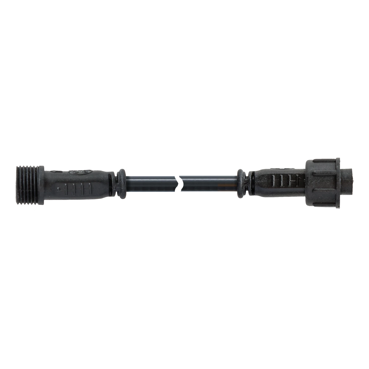 Die 2,5m lange Verbindungsleitung, für Unicolor-Anwendungen, kann sowohl für 12V, als auch 24V Anwendungen verwendet werden. Die Steckverbindung wird zusätzlich durch eine Überwurfmutter gesichert, so dass sich diese nicht ungewollt lösen kann und vor Feuchtigkeit geschützt ist. Dadurch wird die Schutzart IP65 erreicht, was wiederum dafür sorgt, dass das Stecksystem im Außenbereich eingesetzt werden kann.