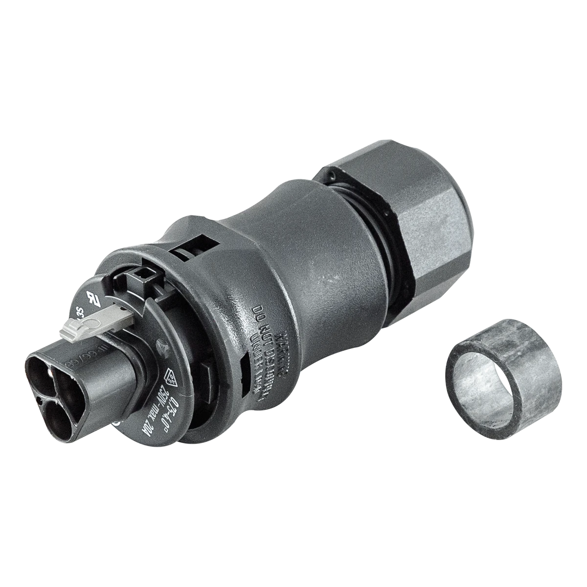 Mit dem IP65-Stecksystem können Verbindungen für Hochvoltanwendungen sowohl im Innen-, als auch Außenbereich schnell und einfach umgesetzt werden. Der Stecker kann an verschiedene Kabel montiert werden, wobei der min.- und max.-Wert für den Kabeldurchmesser beachtet werden müssen.