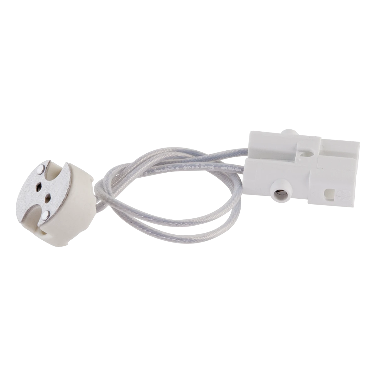 Die Niedervoltfassung ist mit einem Steckverbinder für das Niedervolt-Sicherheits-Stecksystem ausgestattet. Die Fassung ist für 12V Leuchtmittel bis max. 35W geeignet.