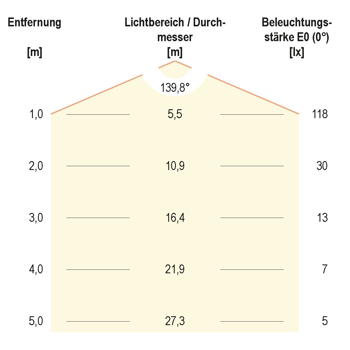 | Ausstrahlungswinkel (min./max.) | 140 - 140 |
