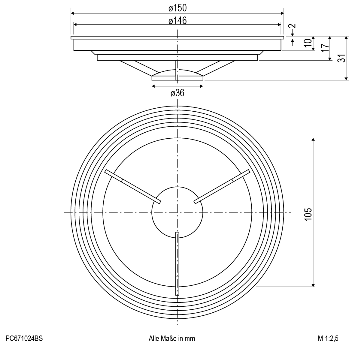 | Abmessung (LxBxH) | 150 x 150 x 31 mm |