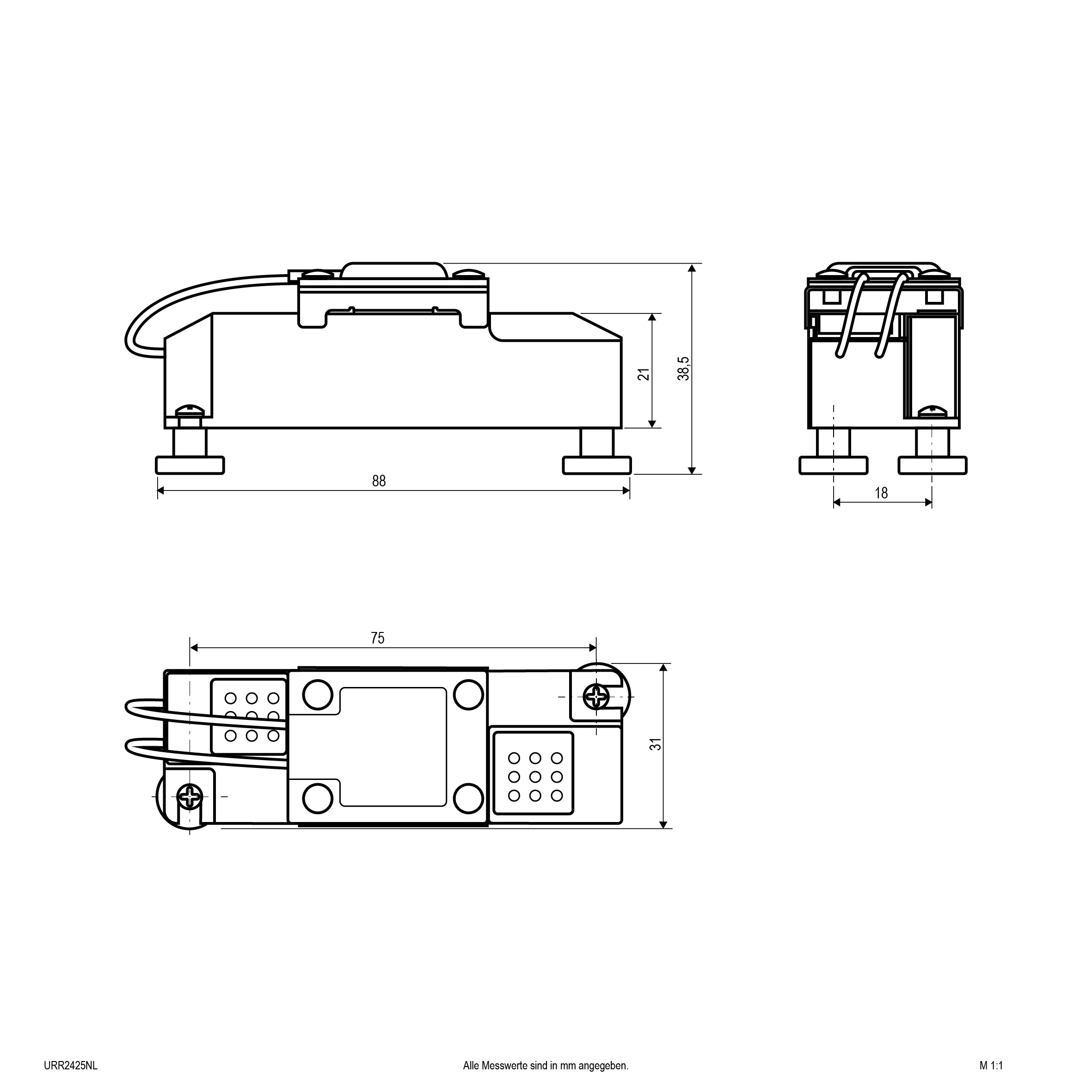 | Abmessung (LxBxH) | 88 x 30.7 x 38.5 mm |