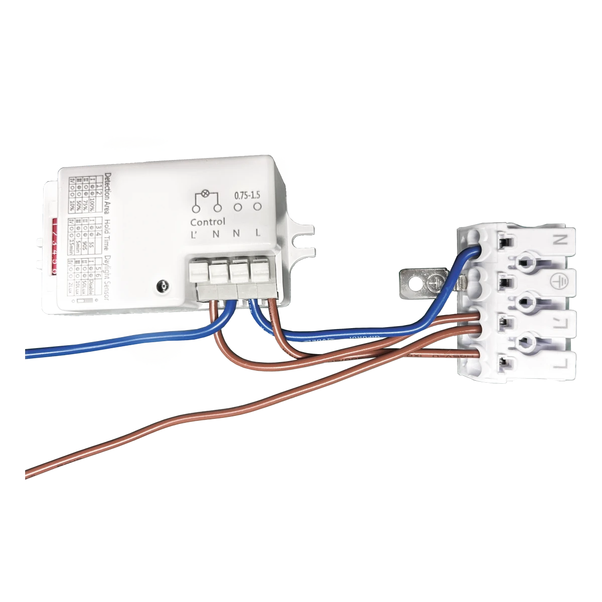 Sensor zum Nachrüsten für die Artikel der DARDO NEXT Serie. Am Bewegungsmelder können mittels Dipschalter folgende Einsellungen vorgenommen werden: Erfassungsreichweite: 100% (12m), 75% (9m), 50% (6m) oder 10% (1,20m). Schaltdauer (Leuchtdauer): 5 Sekunden, 90 Sekunden, 5 Minuten oder 15 Minuten. Funktion: Dauerhaft aktiv, unter 2 Lux, 10 Lux oder 50 Lux. Außerdem besteht die Möglichkeit mehrere Leuchten, bis max. 200W, untereinander zu verbinden, wobei dann jede Leuchte als Schaltstelle dient und alle anderen verbundenen Leuchten mit einschaltet. Arbeitstemperaturbereich -20°C bis + 50°C.