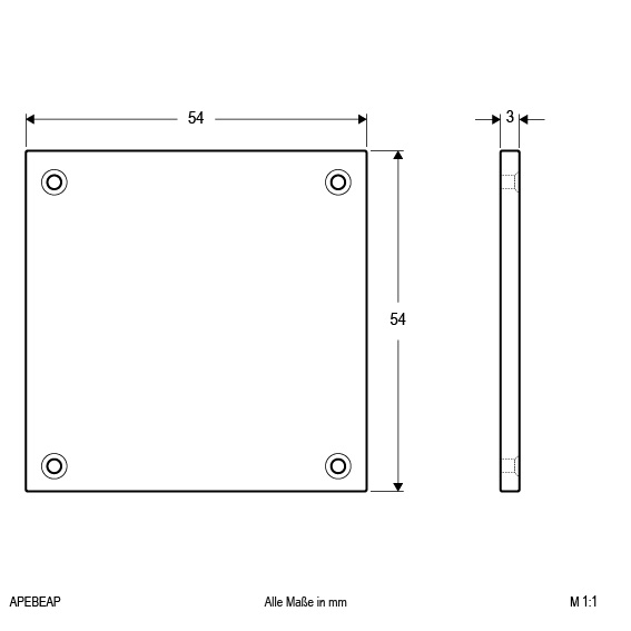 | Abmessung (LxBxH) | 3 x 54 x 54 mm |