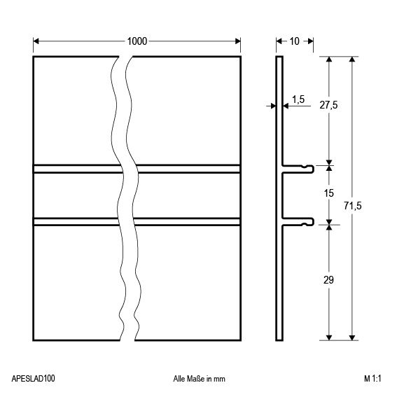 | Abmessung (LxBxH) | 1000 x 71.5 x 10 mm |