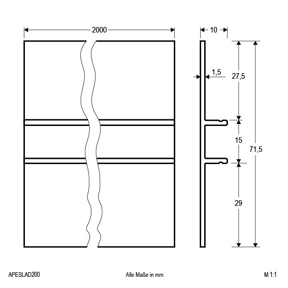 | Abmessung (LxBxH) | 2000 x 71.5 x 10 mm |