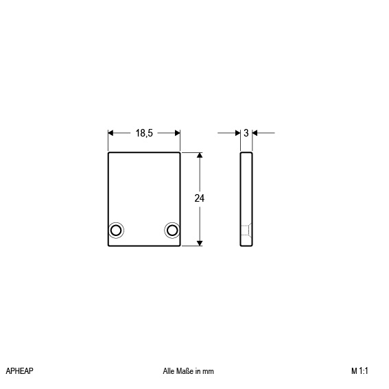 | Abmessung (LxBxH) | 3 x 18.5 x 24 mm |