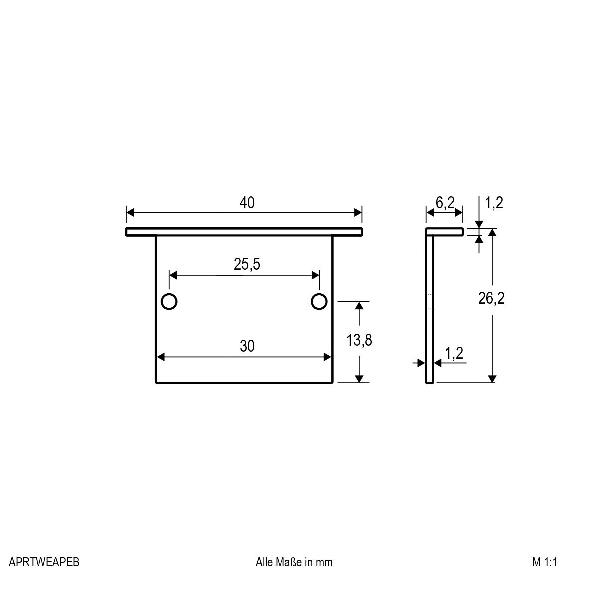| Abmessung (LxBxH) | 6.2 x 40 x 26.2 mm |