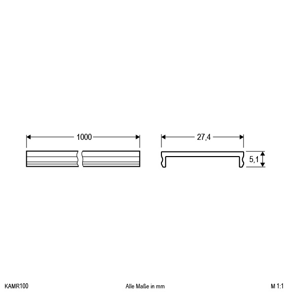 | Abmessung (LxBxH) | 1000 x 27.4 x 5.1 mm |
