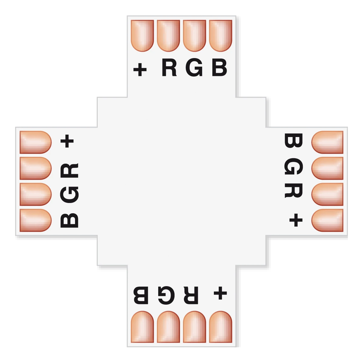 Mit der Platine können 4 LED-Strips ganz einfach über Kreuz verbunden werden. Die Platine kann entweder angelötet werden, oder aber auch ganz einfach mittels der separat erhältlichen Direktverbinder am Strip befestigt werden. Geeignet für RGB-Strips mit einer Breite von 10mm. Die maximale Belastbarkeit beträgt 36V und 5A. Maße: LxBxH: 30 x 30 x 0,2mm.