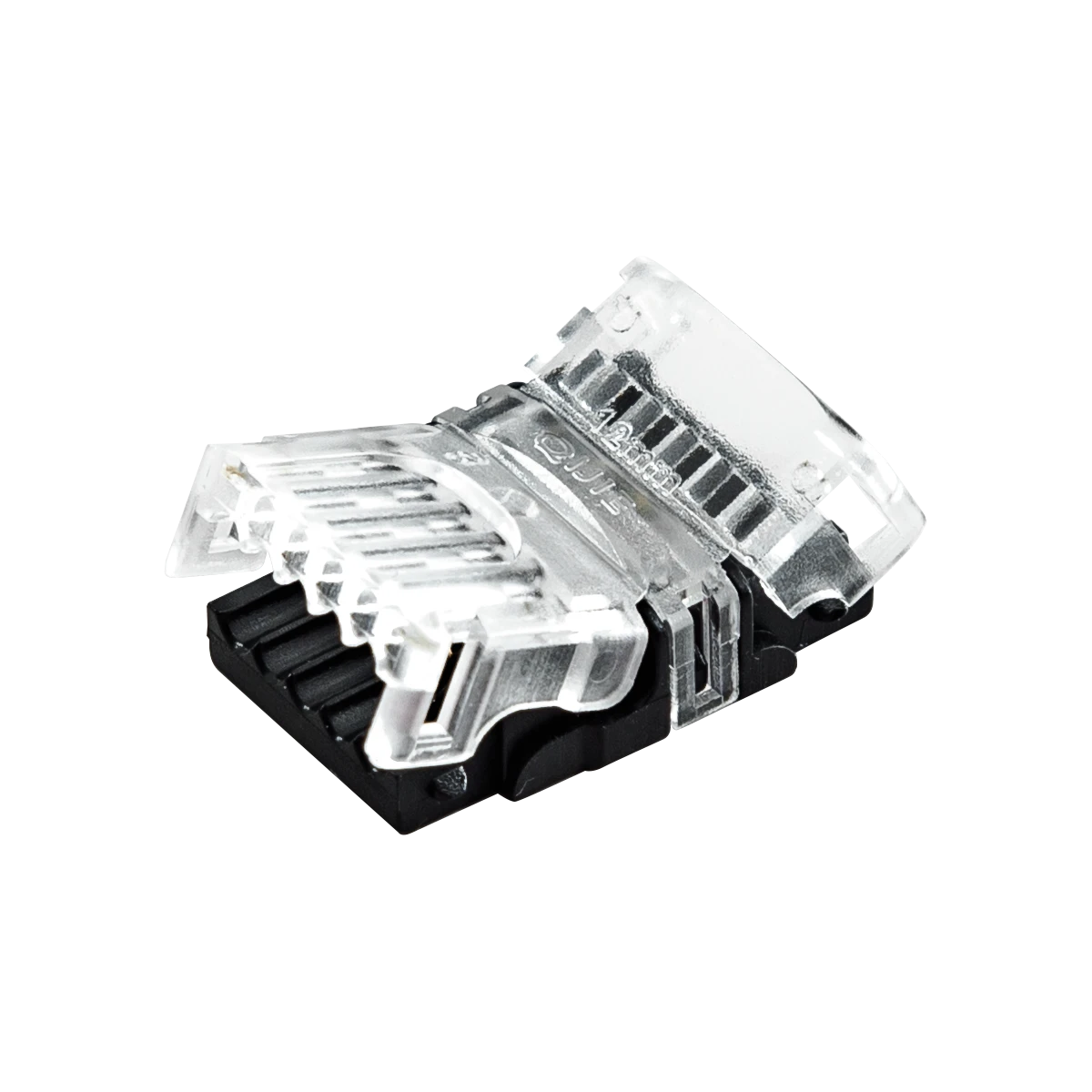 Mit dem Anschlussverbinder kann die Einspeisung am LED-Strip ohne Löten angebracht werden. Dank der flachen und schmalen Bauform kann der Verbinder auch in Alu-Profilen verwendet werden. Sowohl die Anschlussleitung, als auch der LED-Strip werden in den Verbinder eingeschoben und dieser anschließend geschlossen. Der Verbinder ist so konzipiert, dass dieser wieder geöffnet und somit mehrfach verwendet werden kann. Der Verbinder ist geeignet für RGBW LED-Strips mit einer Platinenbreite von 12mm, einer Platinendicke von 0,25 - 0,35mm und einer maximalen Chip-Bestückung von 90 LED pro Meter. Die maximale Belastbarkeit beträgt 36V und 5A. Geeignet für flexible Kabel mit einem Querschnitt von maximal 0,5mm². Maße: LxBxH: 24,3 x 17 x 7,8mm.